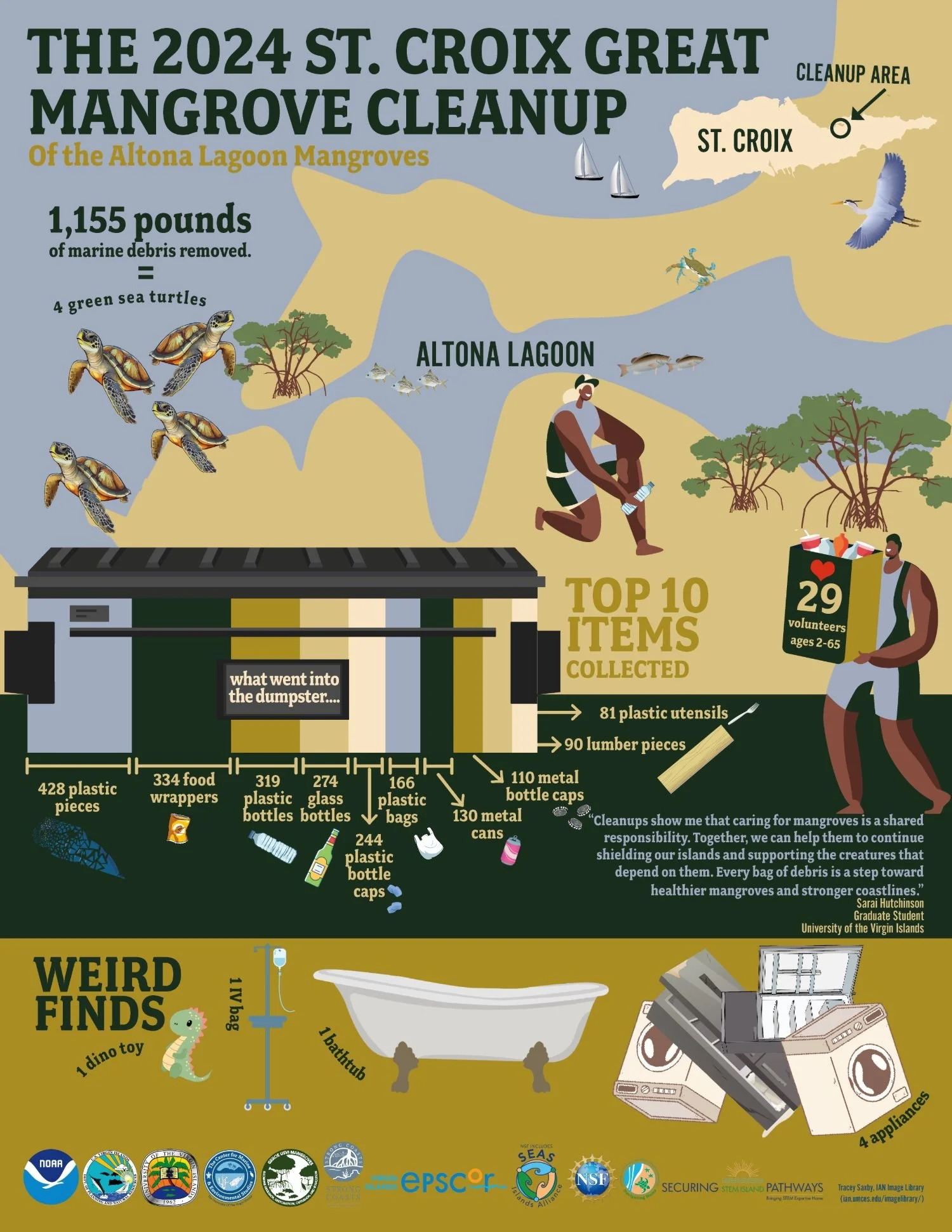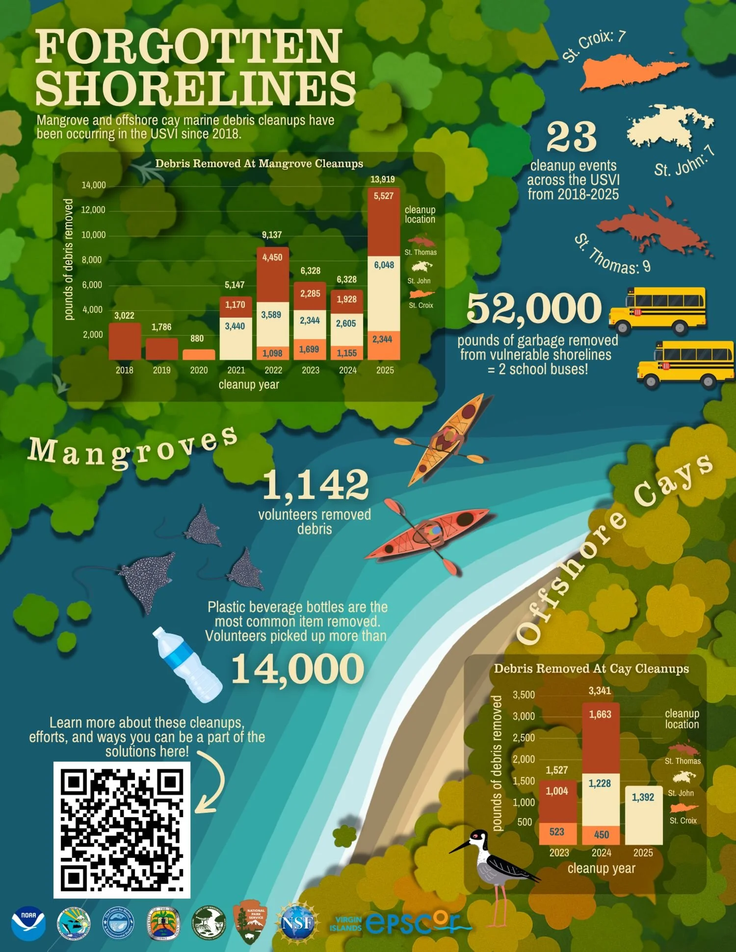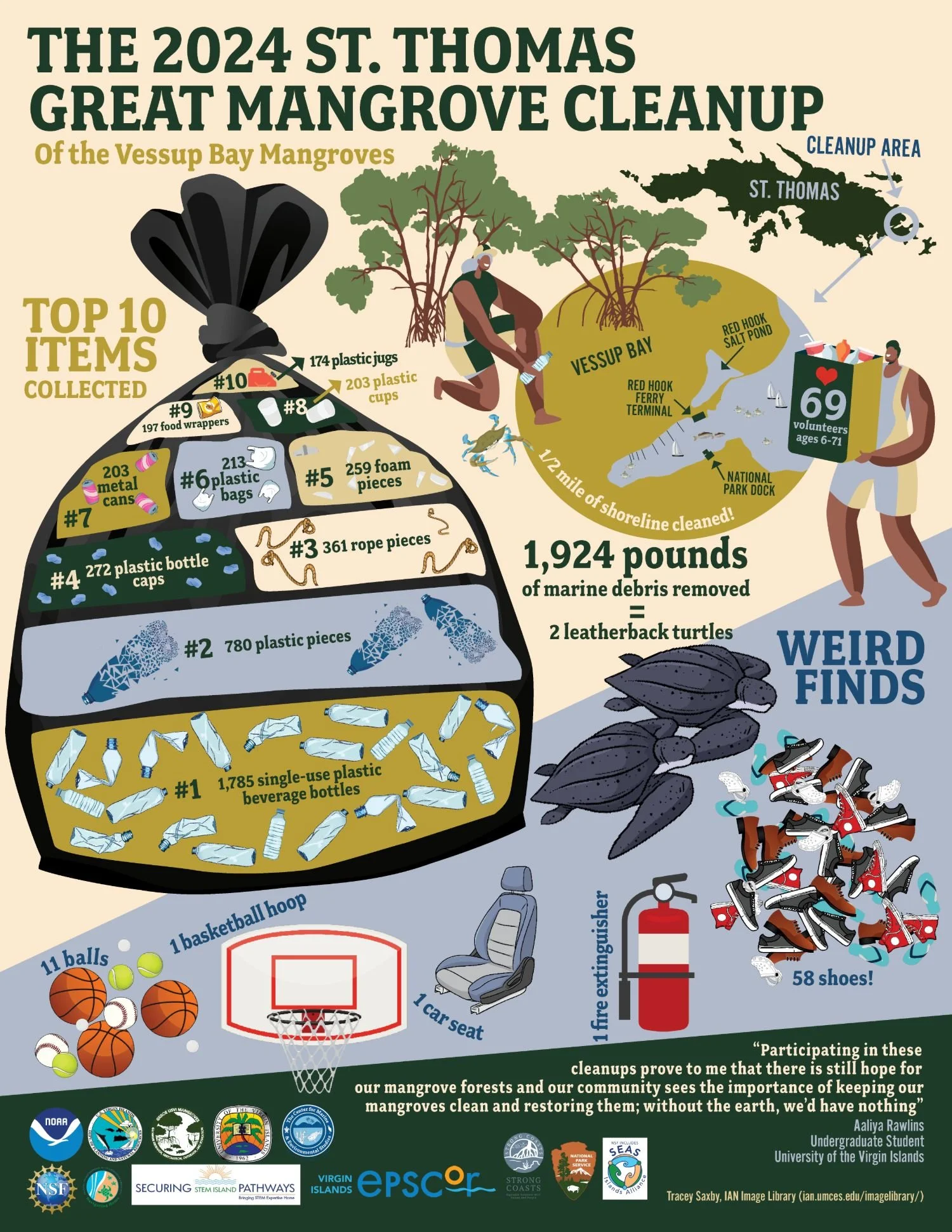 Since our first Great Mangrove Cleanup in 2018, 1,142 volunteers age 4 – 77 removed more than 52,000 pounds of marine debris from mangrove shorelines across the territory! Click the images to see the data.